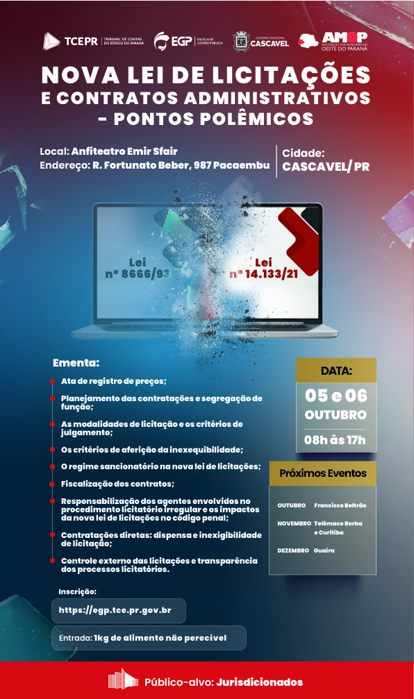 Próximos eventos: Francisco Beltrão - outubro Telêmaco Borba - novembro Curitiba - novembro Paranavaí - dezembro