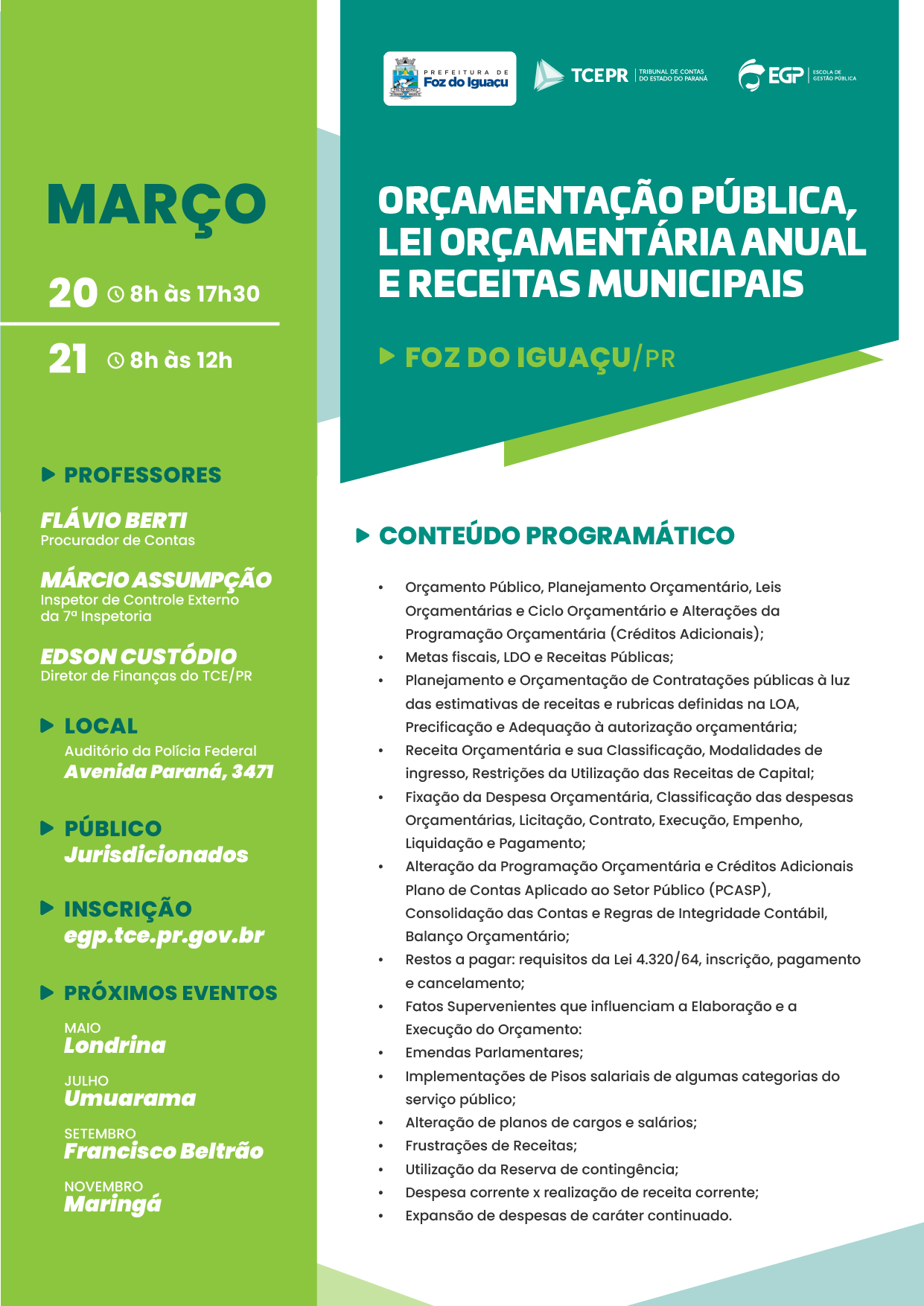 Público-alvo: Vereadores e Servidores de Câmaras de Vereadores, Servidores Municipais do Departamento de Arrecadação Tributária e das Secretarias de Finanças e demais Servidores de Prefeituras.
