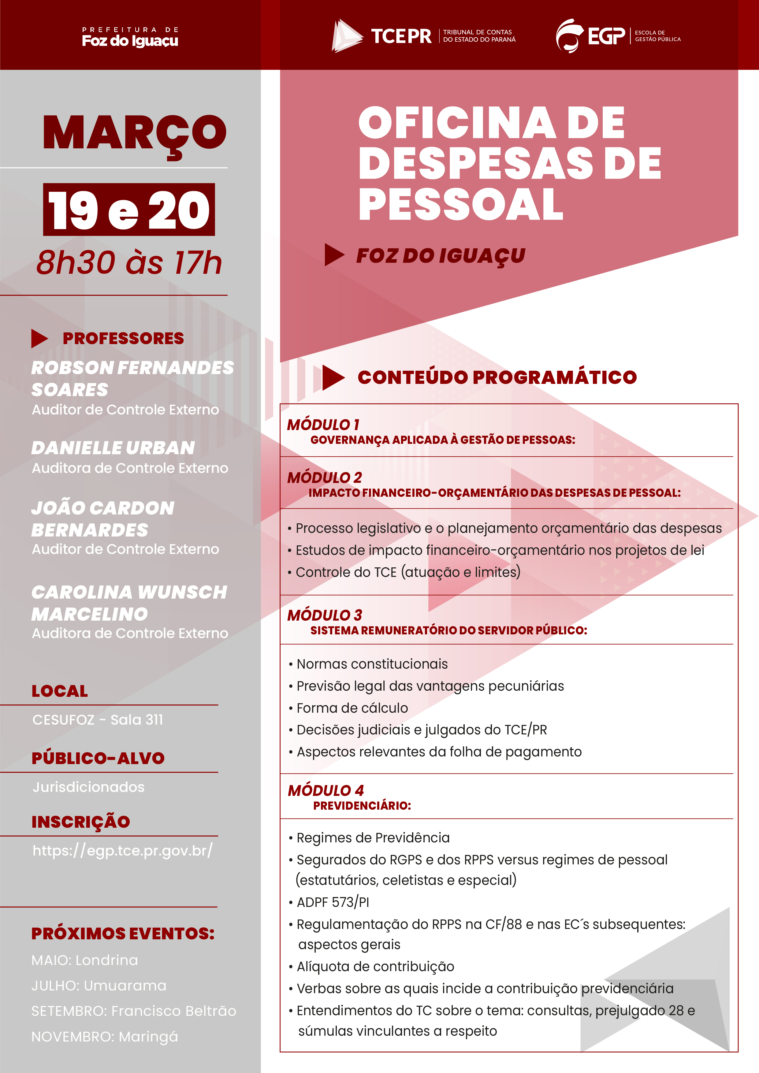 Aplicar problemas do cotidiano, por meio de cases práticos e a partir disso, fomentar as melhores soluções. Estimular o planejamento e reduzir irregularidades na gestão de pessoal, principal item da despesa pública. Capacitar o jurisdicionado na análise dos principais aspectos das despesas e atos de pessoal.