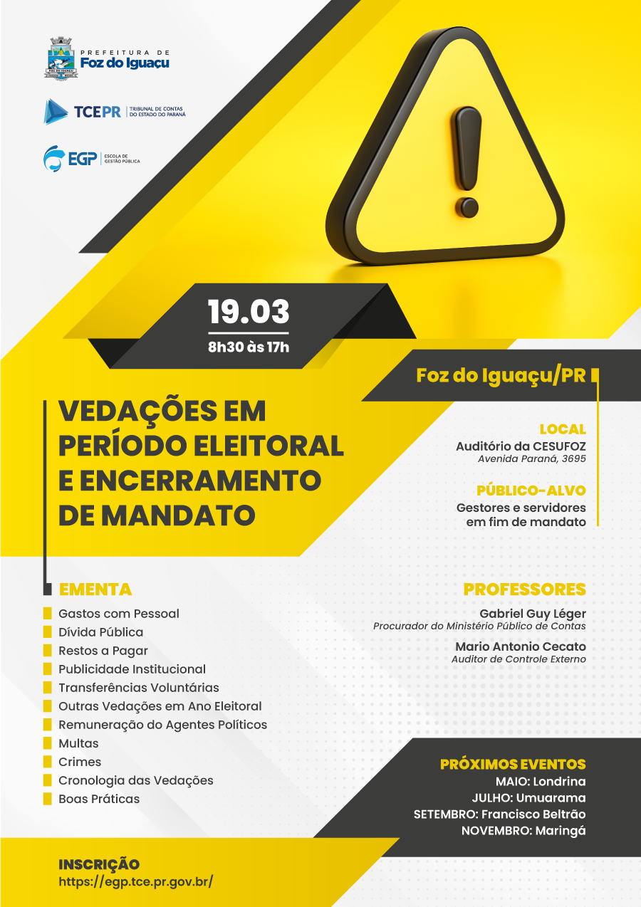 Próximos eventos: MAIO: Londrina JULHO: Umuarama SETEMBRO: Francisco Beltrão NOVEMBRO: Maringá