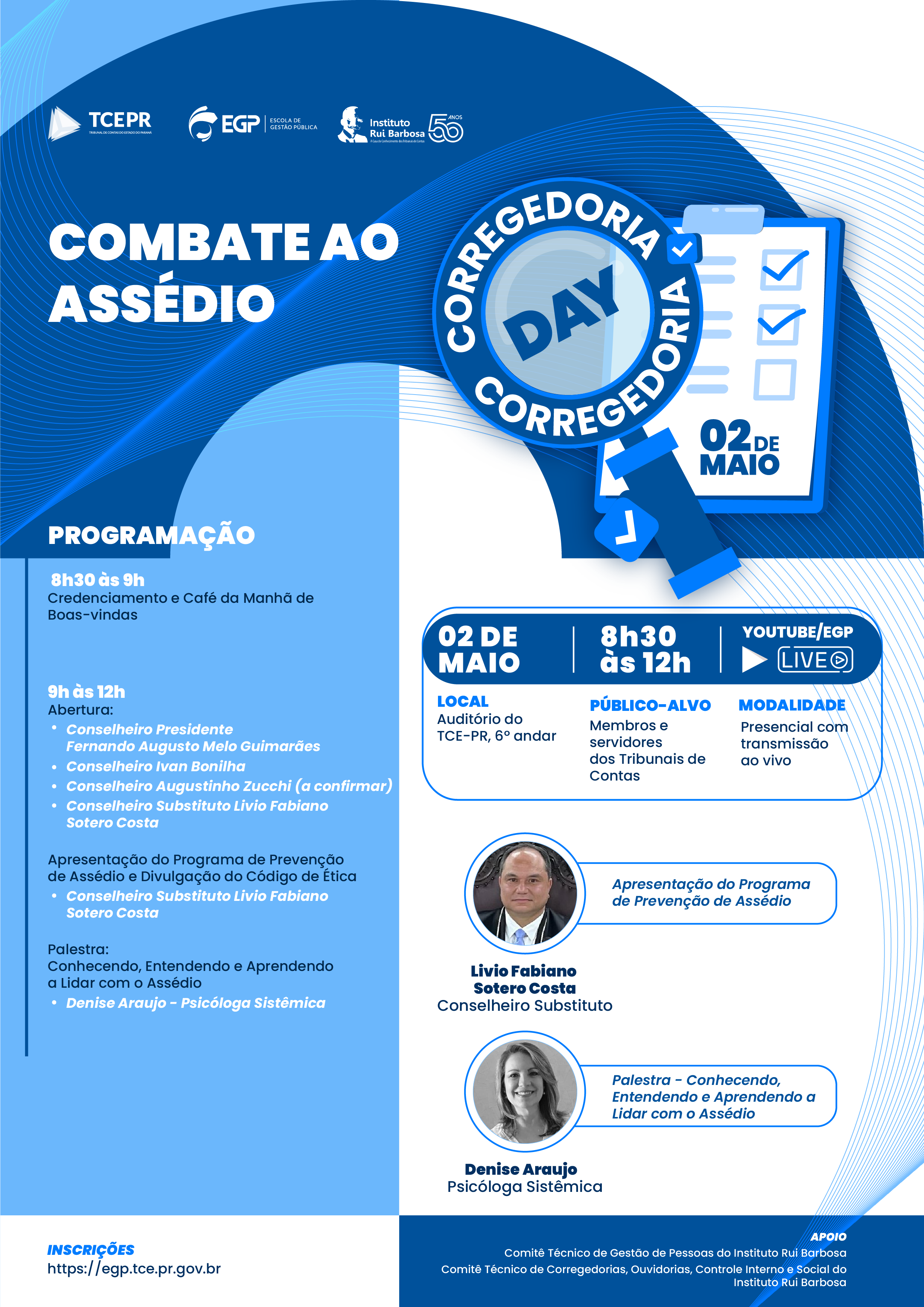 Este evento é uma ação nacional do Instituto Rui Barbosa, com o intuito de fomentar o aprimoramento das Corregedorias dos Tribunais de Contas e fortalecer o papel dessas unidades nas instituições públicas, promovendo a gestão da ética no âmbito das Cortes de Contas brasileiras.