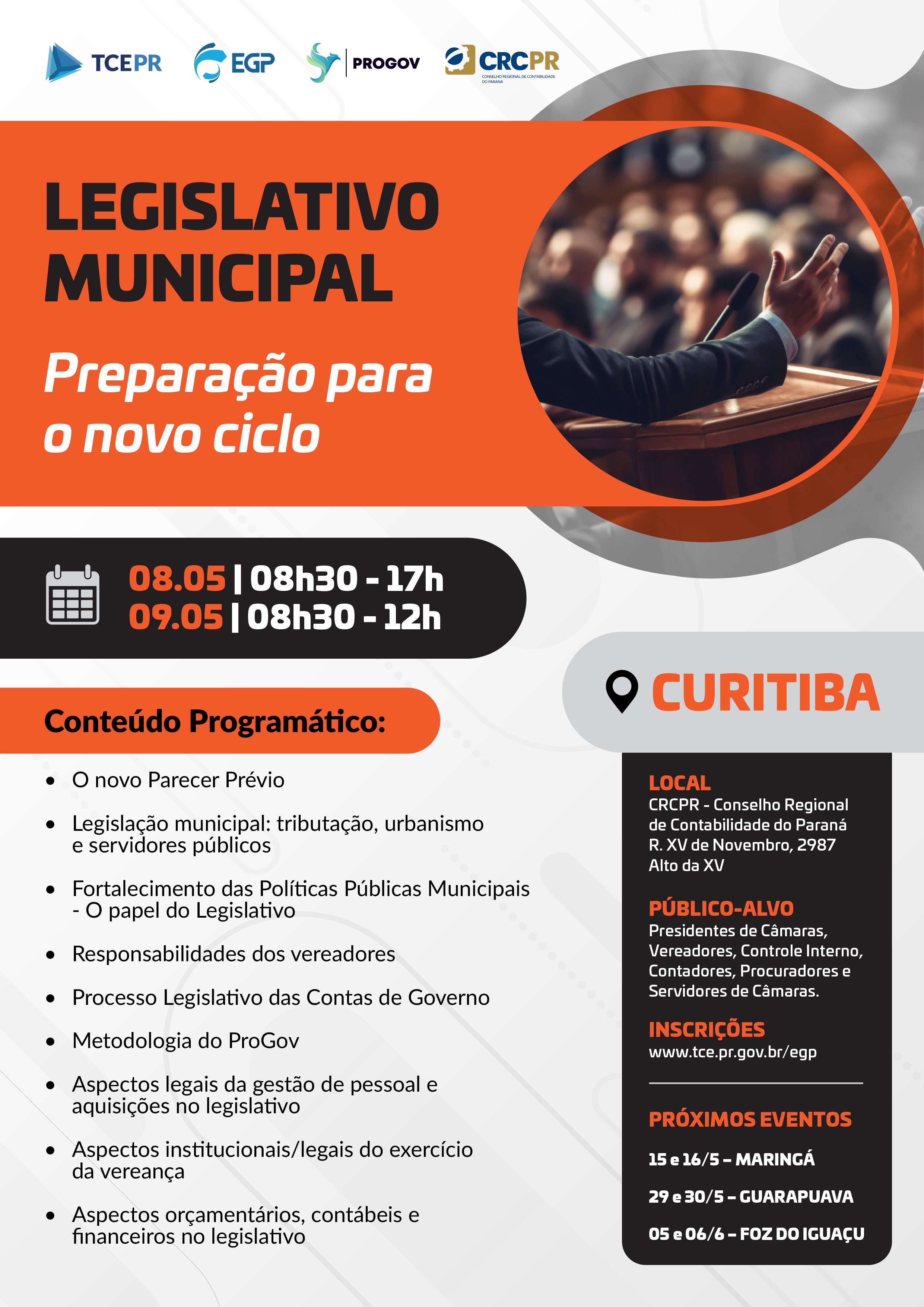 Público-alvo: Presidentes de Câmaras, Vereadores, Controle Interno, Contadores.