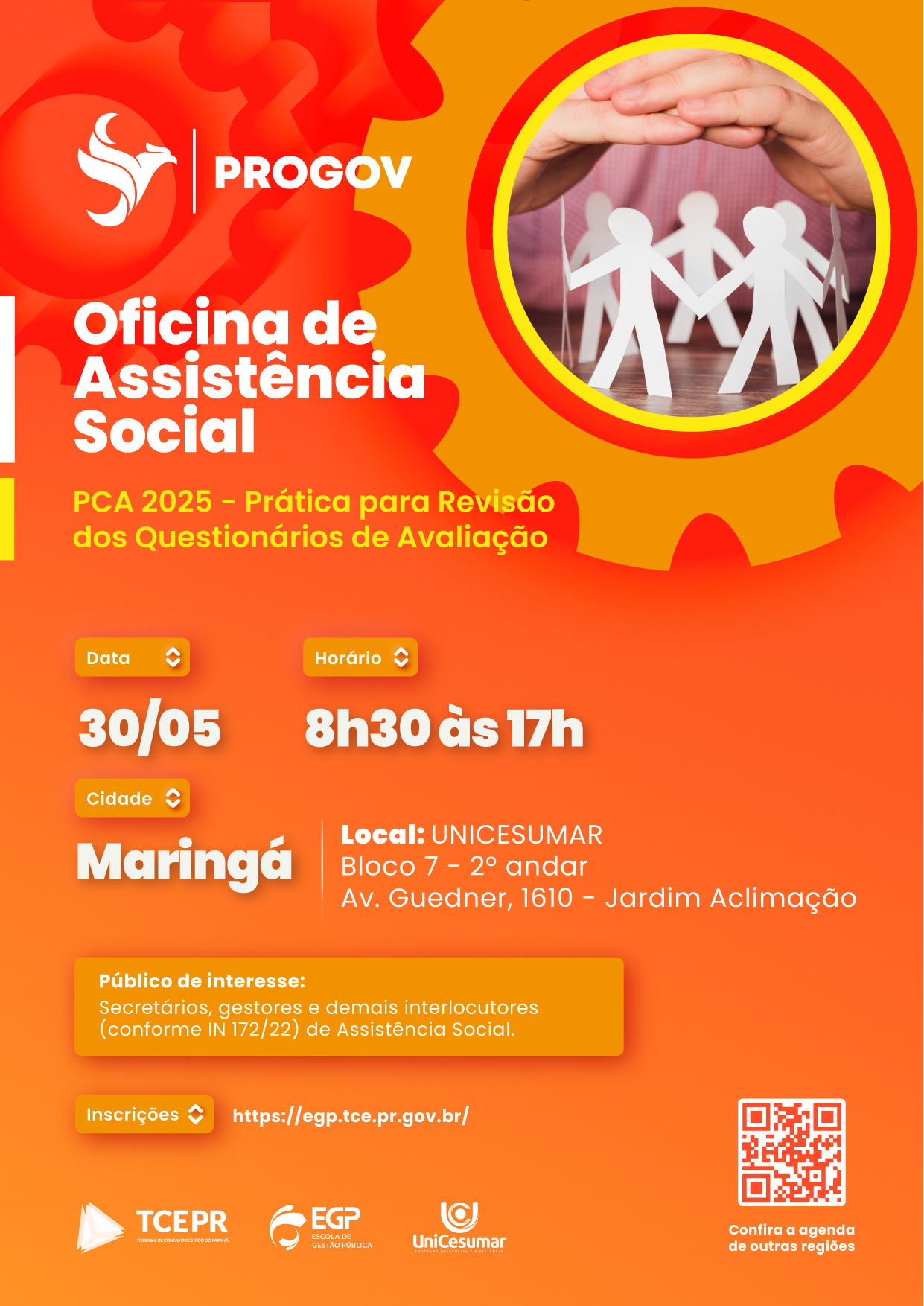 Atividade prática com os questionários de avaliação - PCA 2025. Inscreva-se EM APENAS UMA oficina da sua região.