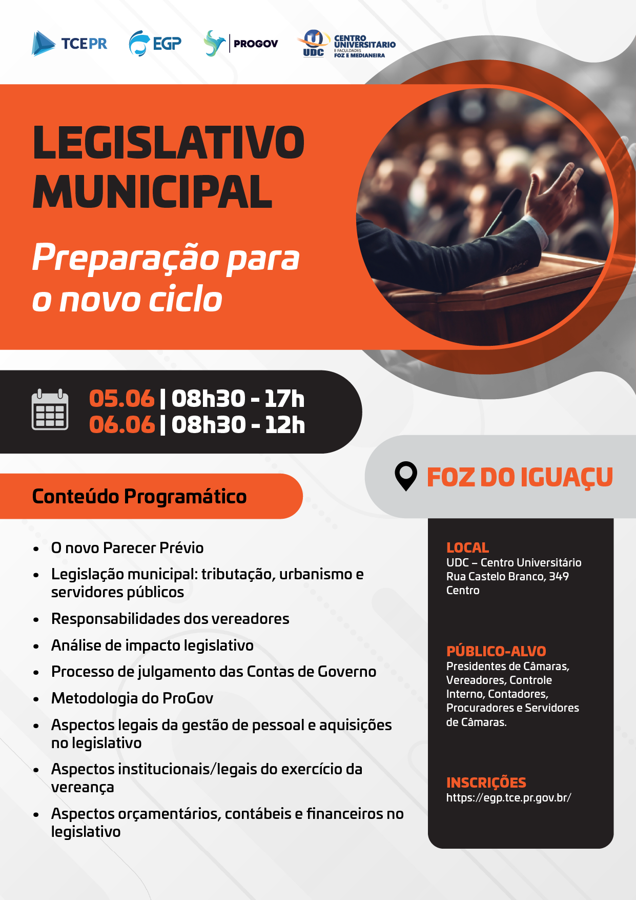 Público-alvo: Presidentes de Câmaras, Vereadores, Controle Interno, Contadores.