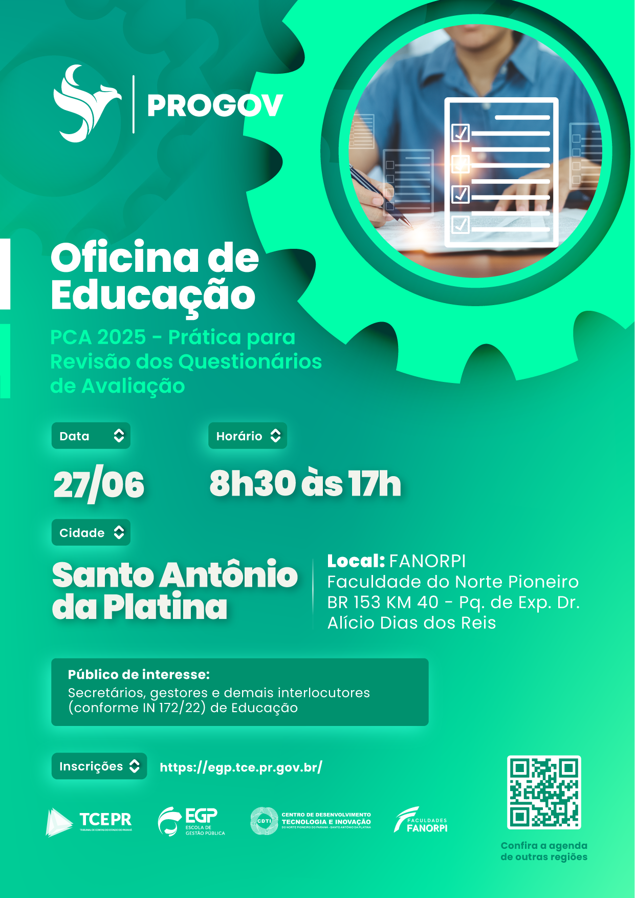 Atividade prática com os questionários de avaliação - PCA 2025. Inscreva-se EM APENAS UMA oficina da sua região.