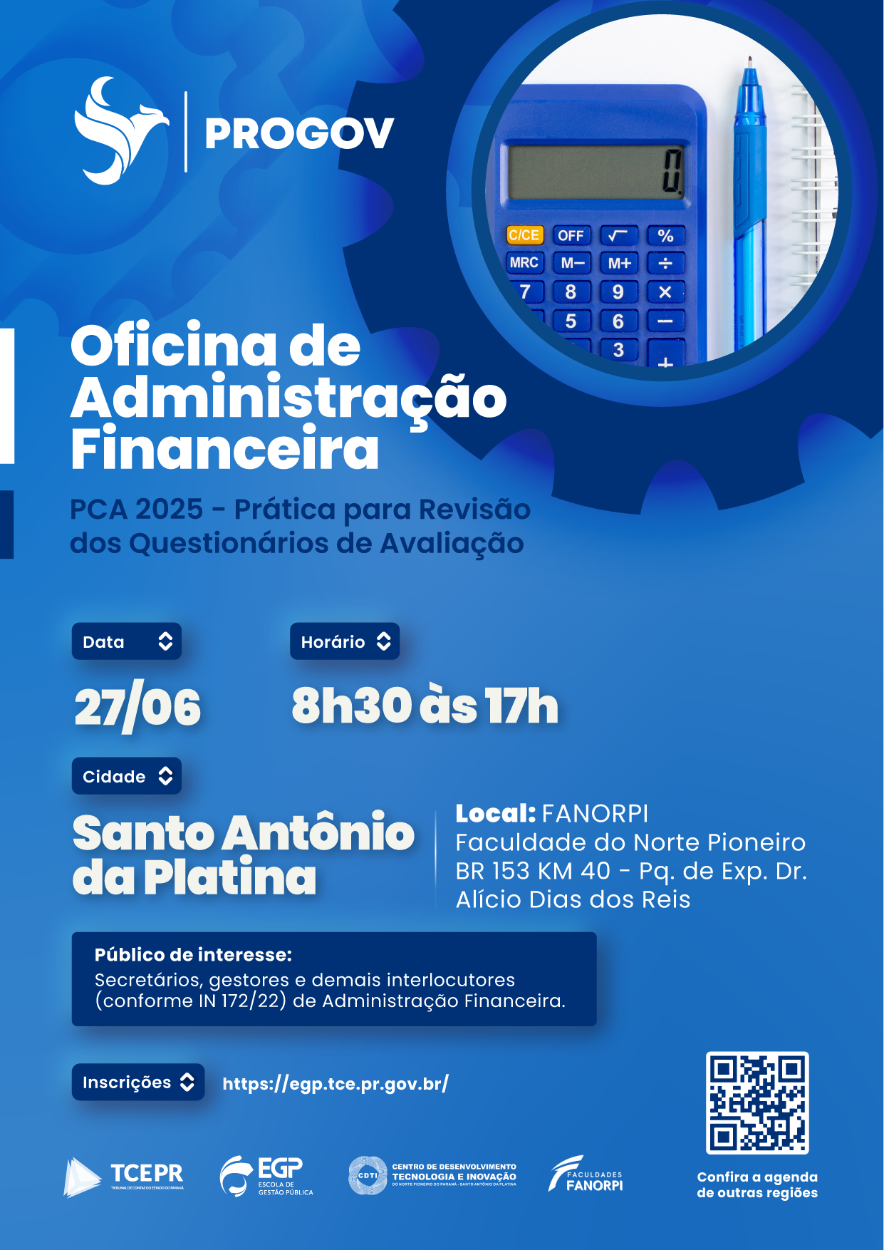 DATA: 27/06/25 - 8h30 às 17h LOCAL: FANORPI ENDEREÇO: BR 153 KM 40 - Pq. de Exp. Dr. Alício Dias dos Reis