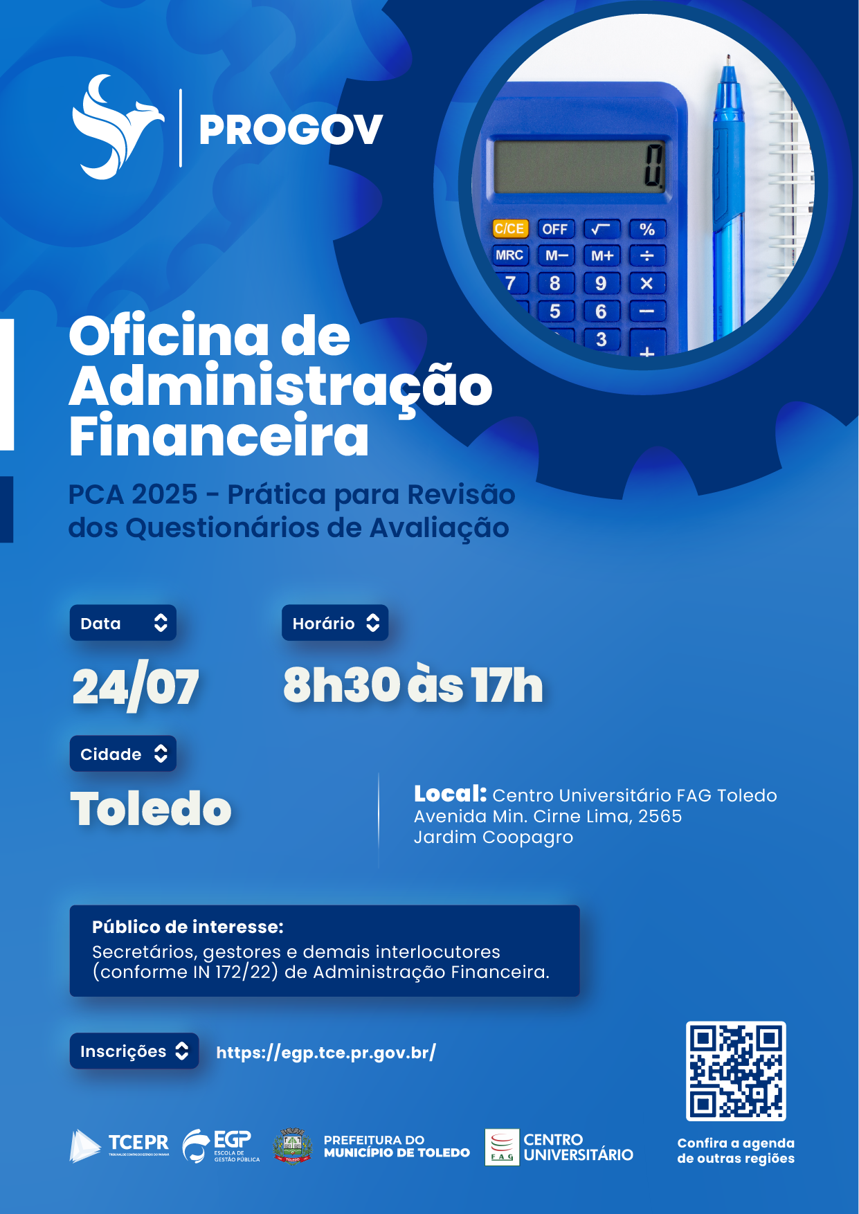 DATA: 24/07/25 - 8h30 às 17h LOCAL: Centro Universitário FAG Toledo ENDEREÇO: Av. Min. Cirne Lima, 2565 - Jardim Coopagro, Toledo - PR
