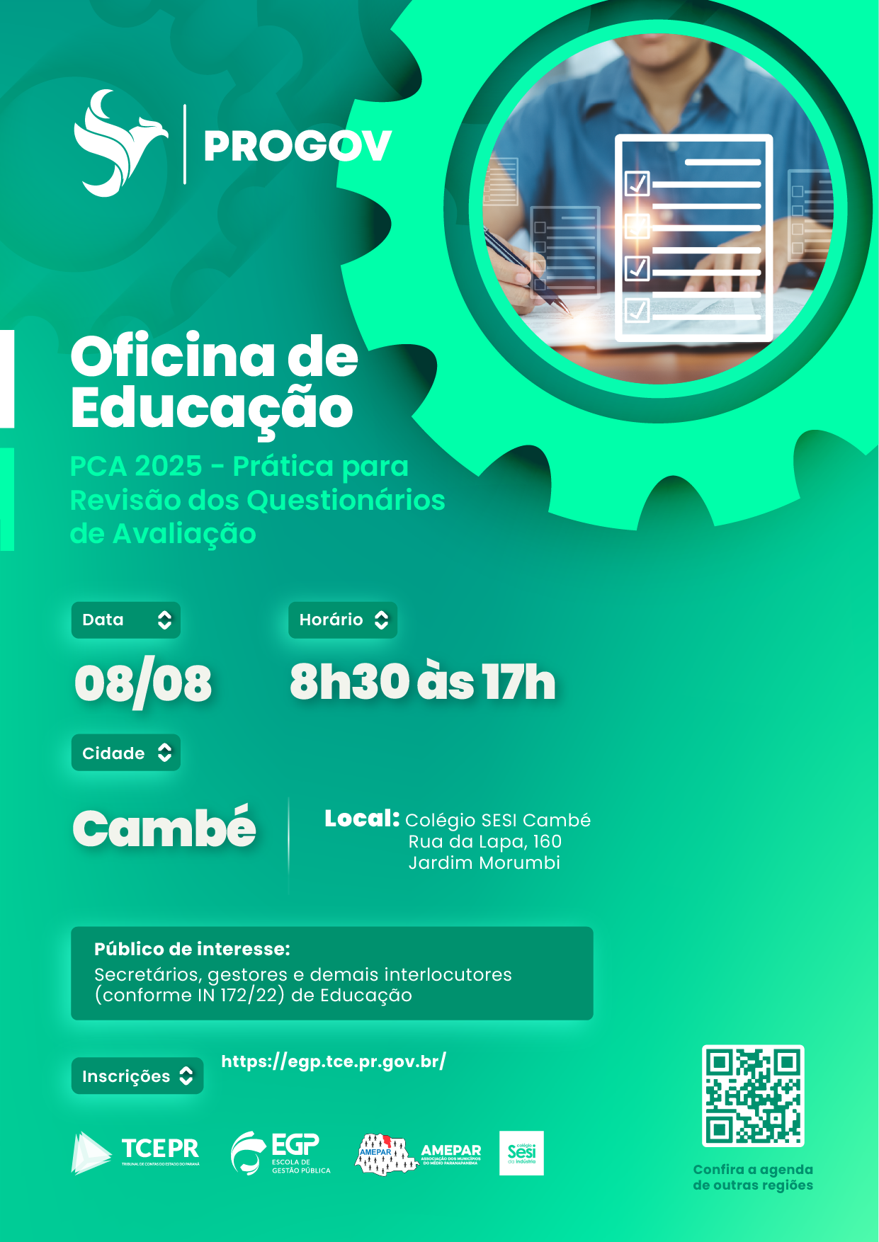 Atividade prática com os questionários de avaliação - PCA 2025. Inscreva-se EM APENAS UMA oficina da sua região.