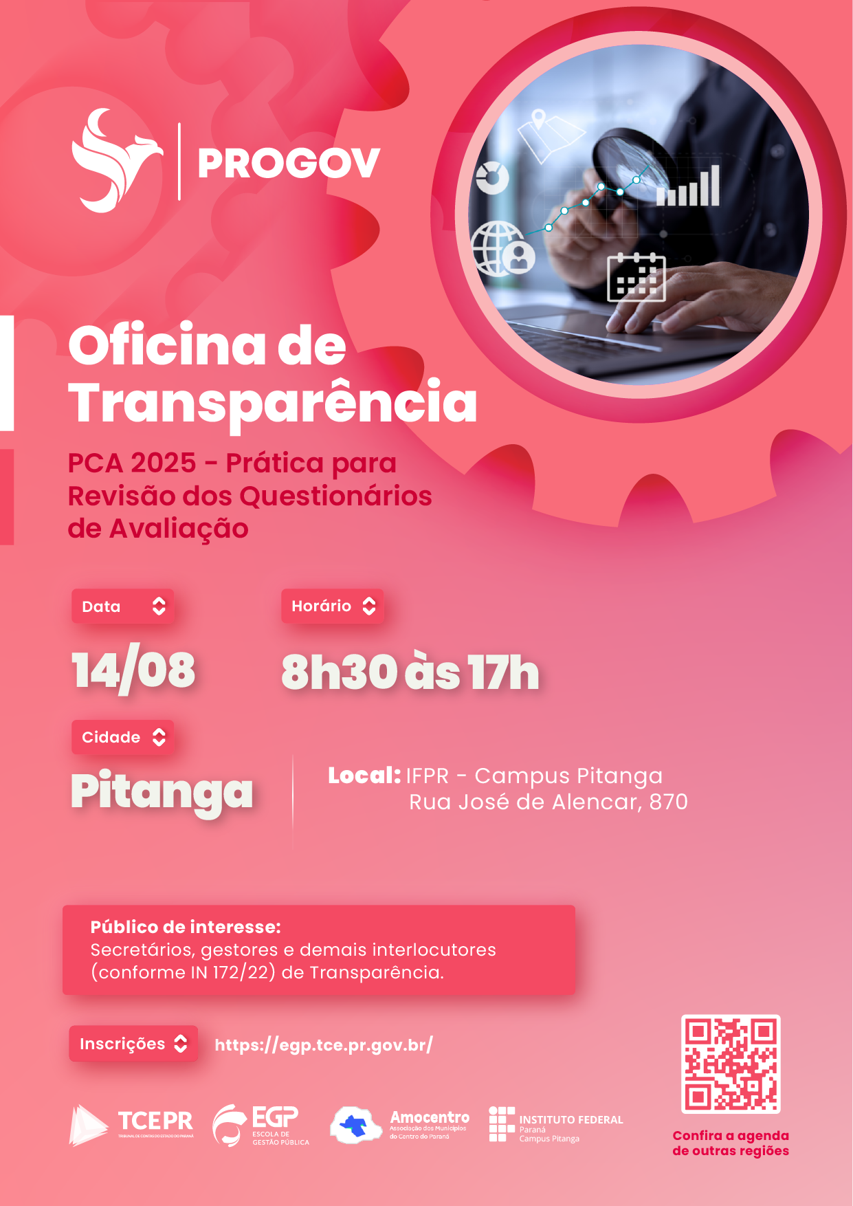DATA: 14/08/25 - 8h30 às 17h LOCAL: IFPR - Campus Pitanga ENDEREÇO: Rua José de Alencar, 870 - Pitanga - PR
