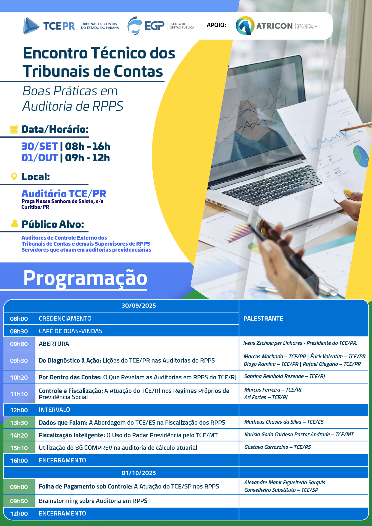30/09 - 09h30 - Do Diagnóstico à Ação: Lições do TCE/PR nas Auditorias de RPPS - Marcus Machado, Érick Valentim, Diogo Ramina e Rafael Olegário – TCE/PR