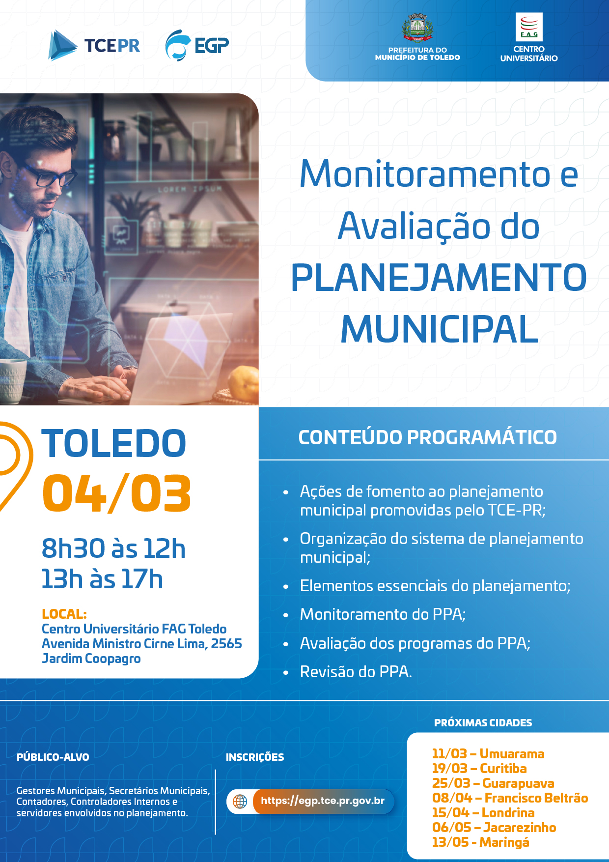 O curso tem como objetivo apresentar e discutir, por meio de casos práticos, as etapas de monitoramento e Avaliação dos programas constantes no PPA. Serão apresentados diversos tipos de monitoramento, como monitoramento do cenário fiscal, de indicadores, de metas, de custos, de agendas governamentais, bem com diversos tipos de avaliação, como avaliação de diagnóstico, de desenho, de implementação, de governança, de resultado.