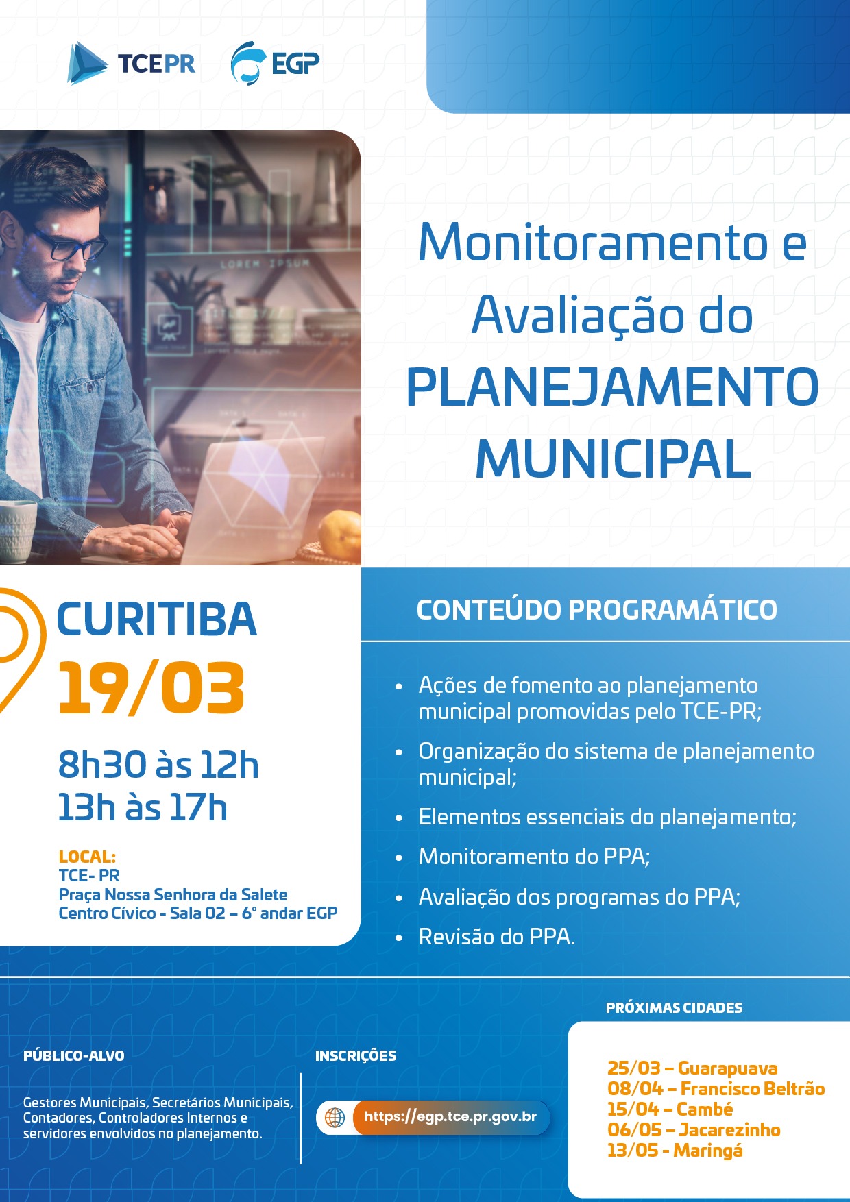 O curso tem como objetivo apresentar e discutir, por meio de casos práticos, as etapas de monitoramento e Avaliação dos programas constantes no PPA. Serão apresentados diversos tipos de monitoramento, como monitoramento do cenário fiscal, de indicadores, de metas, de custos, de agendas governamentais, bem com diversos tipos de avaliação, como avaliação de diagnóstico, de desenho, de implementação, de governança, de resultado.