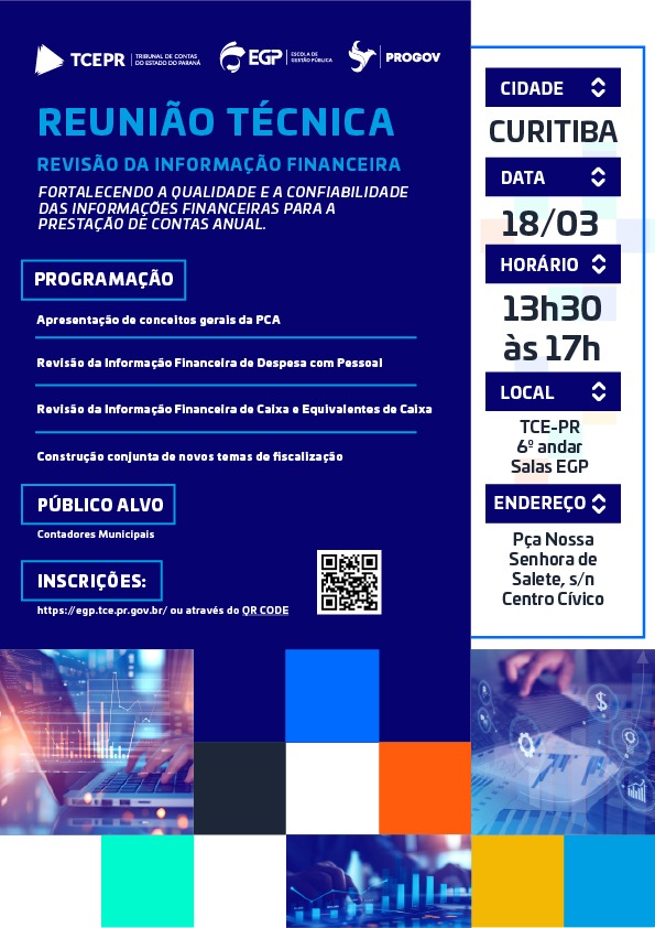 CURITIBA Data: 18/03 Horário: 13h30 às 17h00 Local: TCE-PR - 6º andar - Salas EGP Pça. Nossa Senhora de Salete, s/n - Centro Cívico