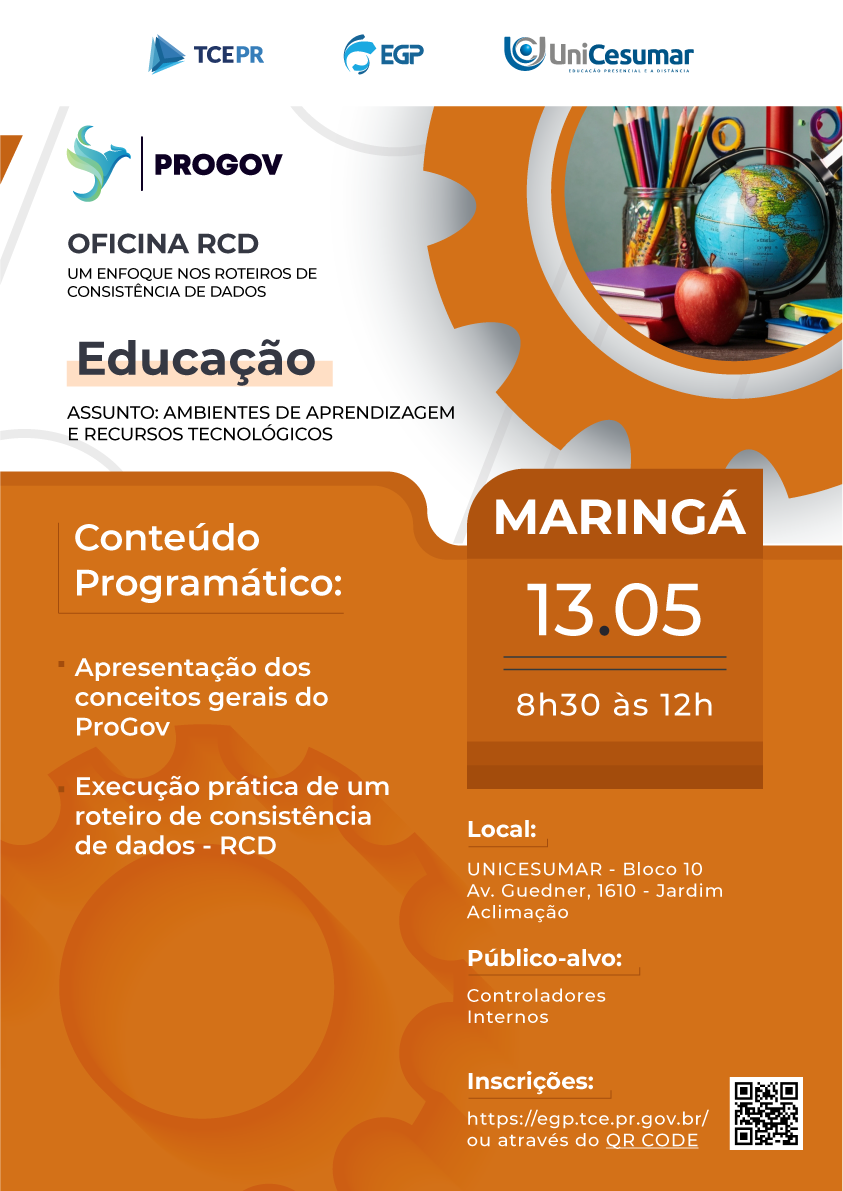 Aprenda, de forma prática, a aplicar os Roteiros de Consistência de Dados (RCD) do ProGov, qualificando as informações municipais e fortalecendo o monitoramento da atuação governamental. A oficina apresenta os conceitos gerais do ProGov e a execução prática de um RCD. Público-alvo: Controladores Internos, Conselhos Municipais e Comissões do Poder Legislativo Municipal.