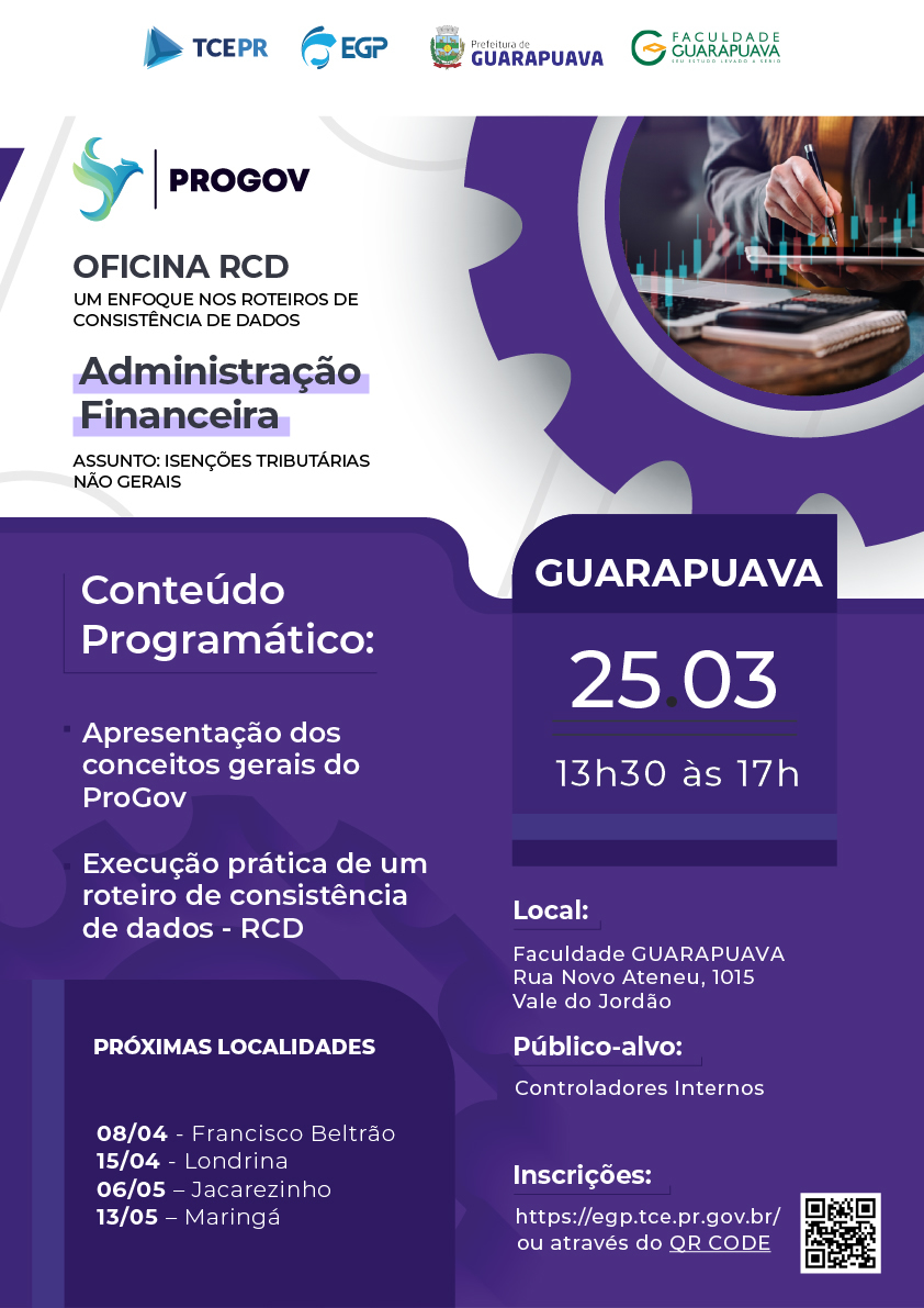 Cursos Relacionados à: Guarapuava - Oficina RCD 2026 - Adm. Financeira